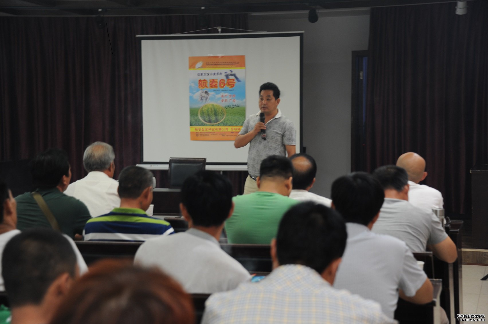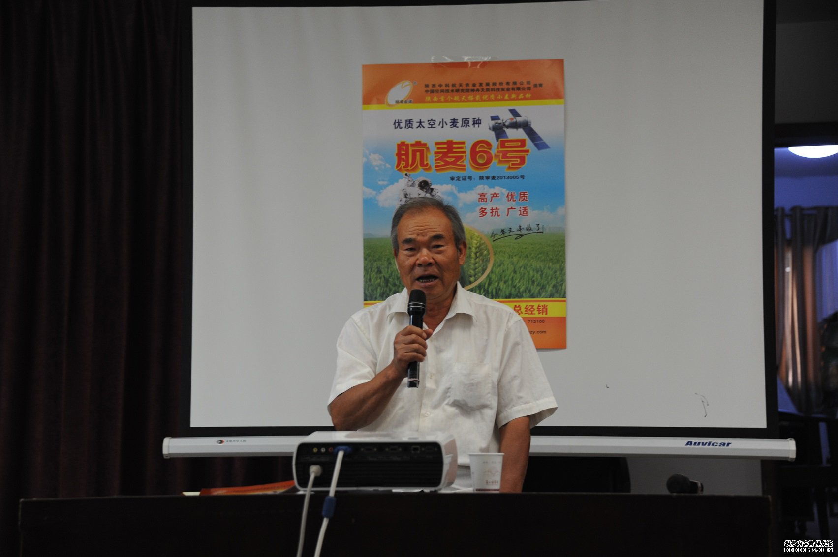 西北農(nóng)林科技大學(xué)小麥育種專家、中科航天小麥育種顧問王明岐教授。對航麥6號新品種做了詳細(xì)講解。楊凌金諾種業(yè)責(zé)任有限公司總經(jīng)理代表銷售方發(fā)言。陜西中科航天農(nóng)業(yè)發(fā)展股份有限公司董事長聶平俊做了重要講話。